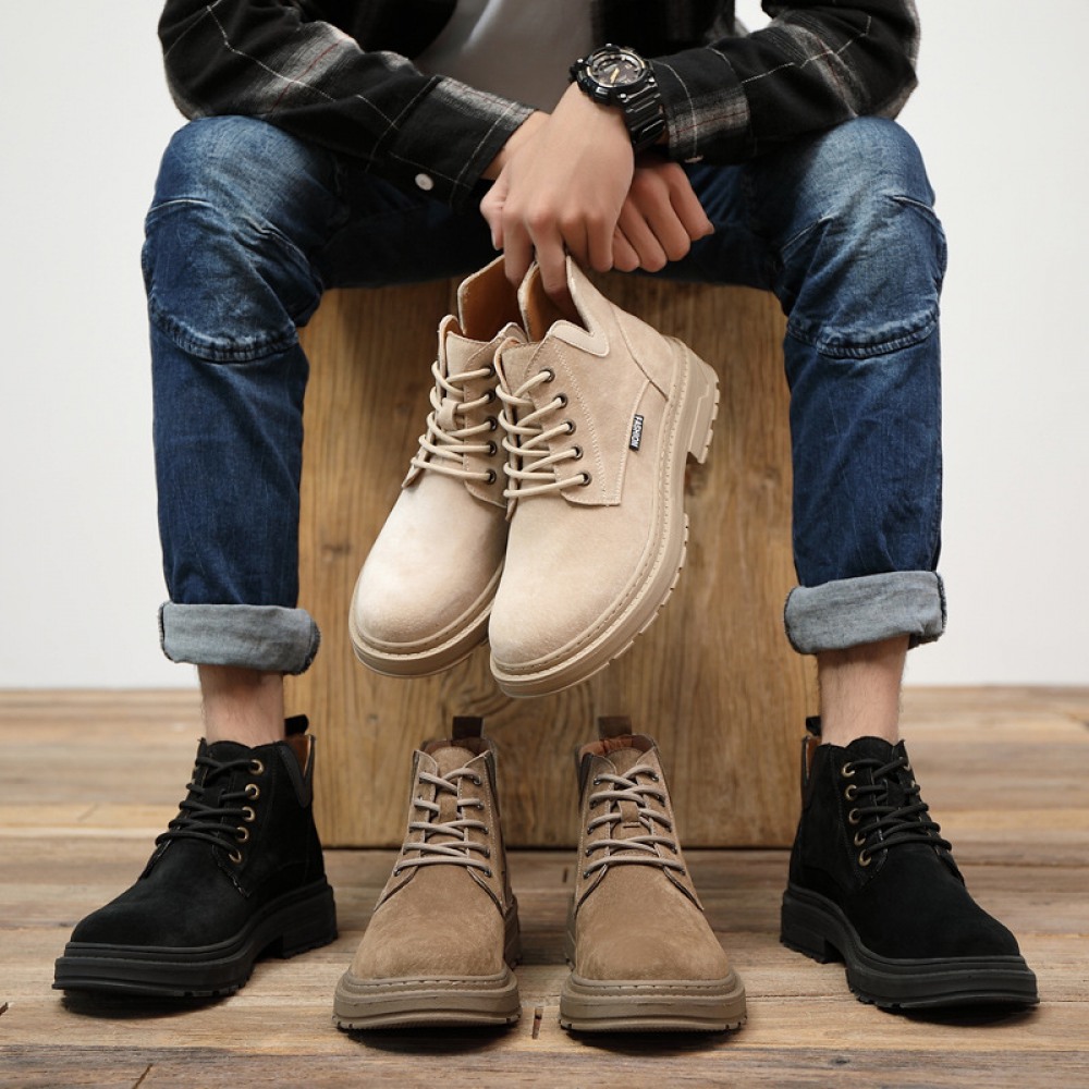 Trend Martin Boots Cow Suede Leather Men's Boots Low-Cut Tooling Boots Casual Mens Short Boots