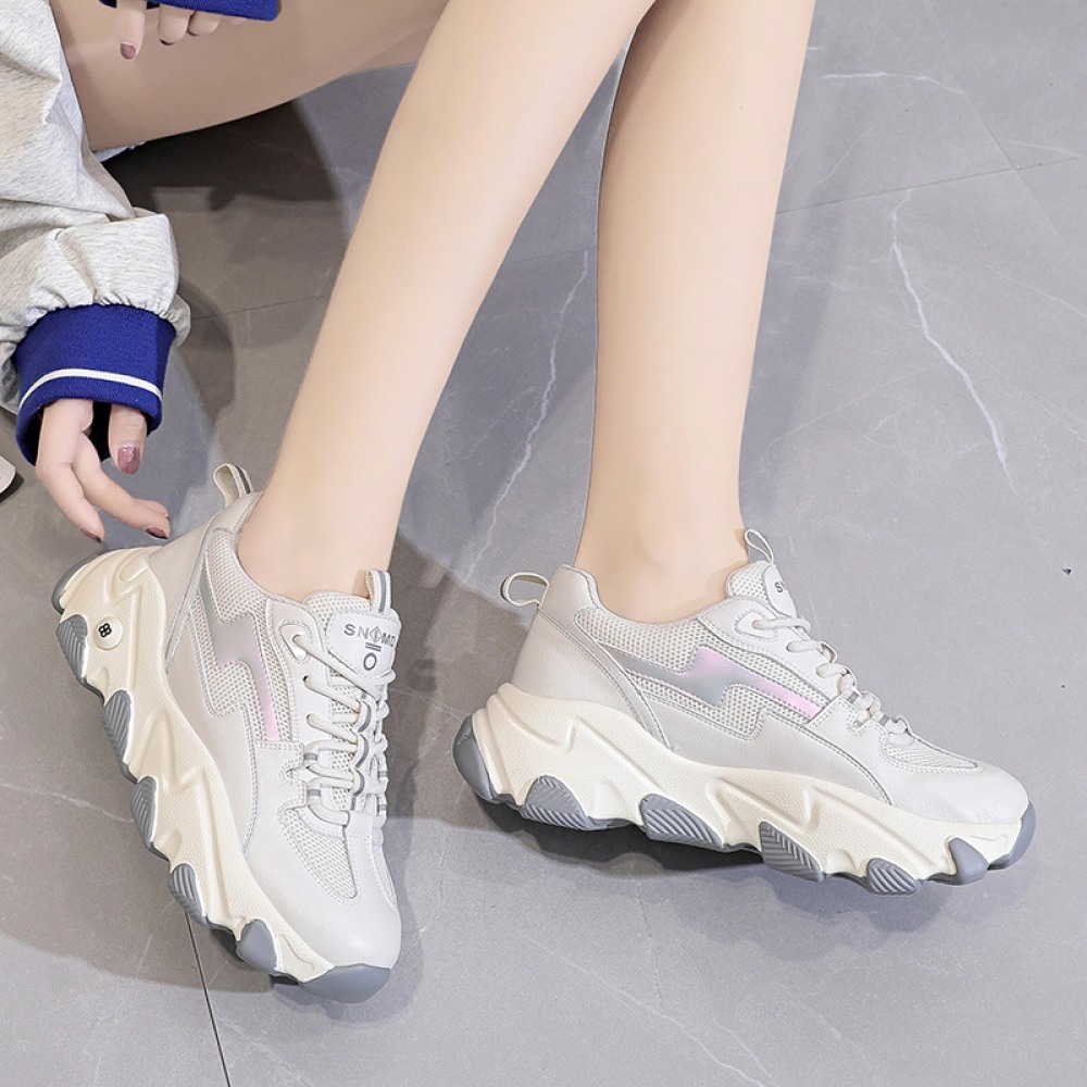 Women's New Autumn Trendy Shoes Breathable Thick-Soled Increased Mesh Surface Sports and Leisure Women Shoes