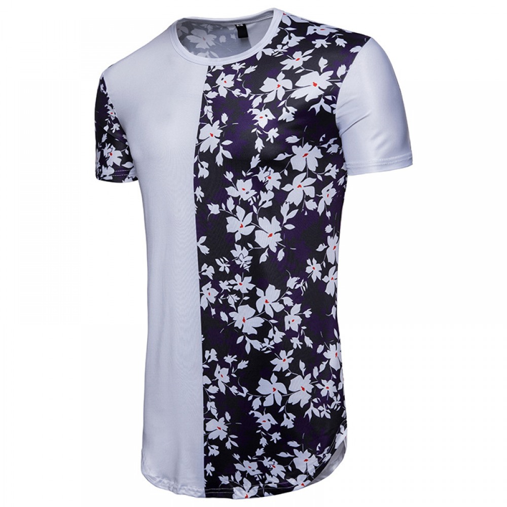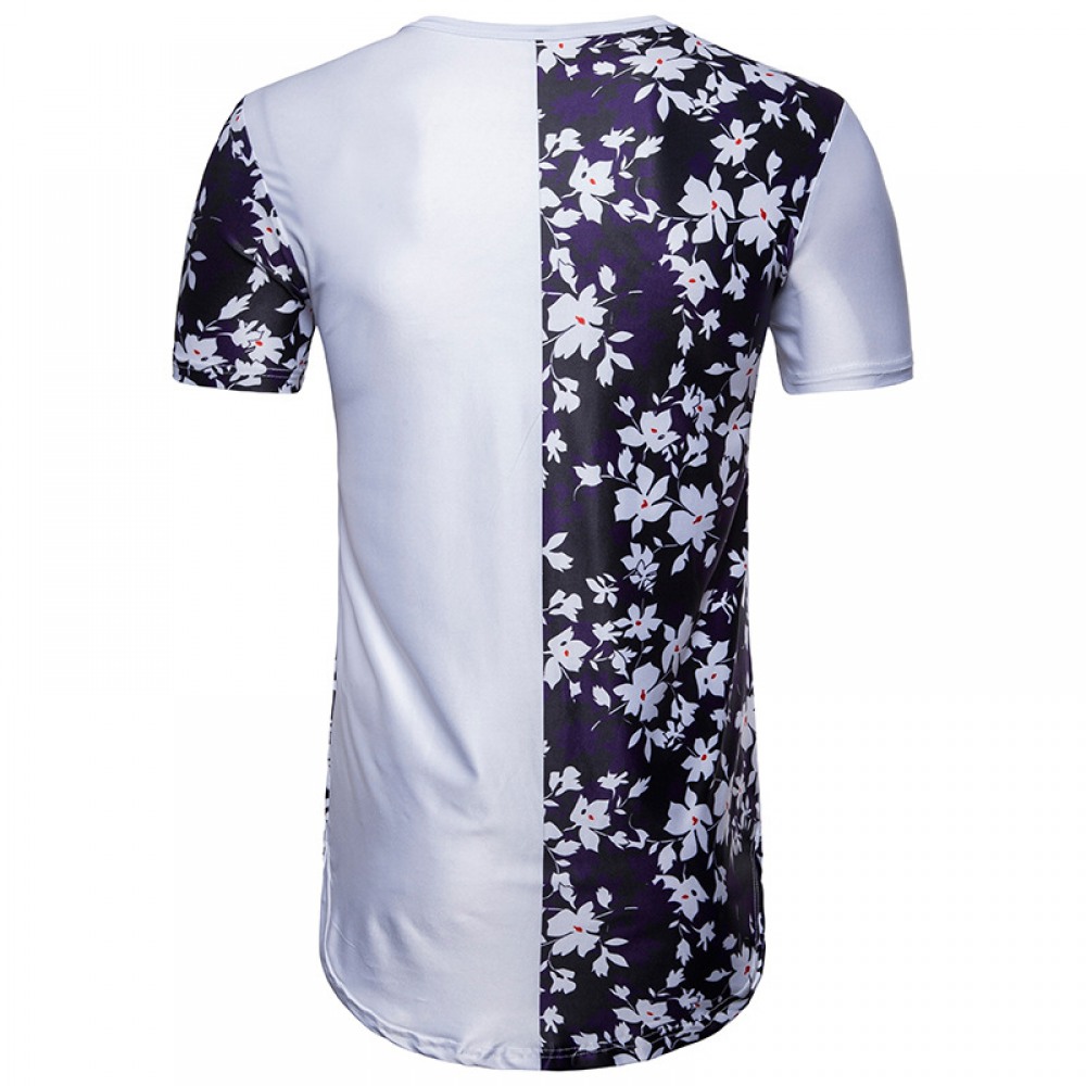 New Men's Digital Print Floral Color Matching Short-Sleeved Hip-Hop T-Shirt
