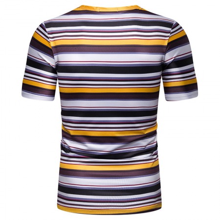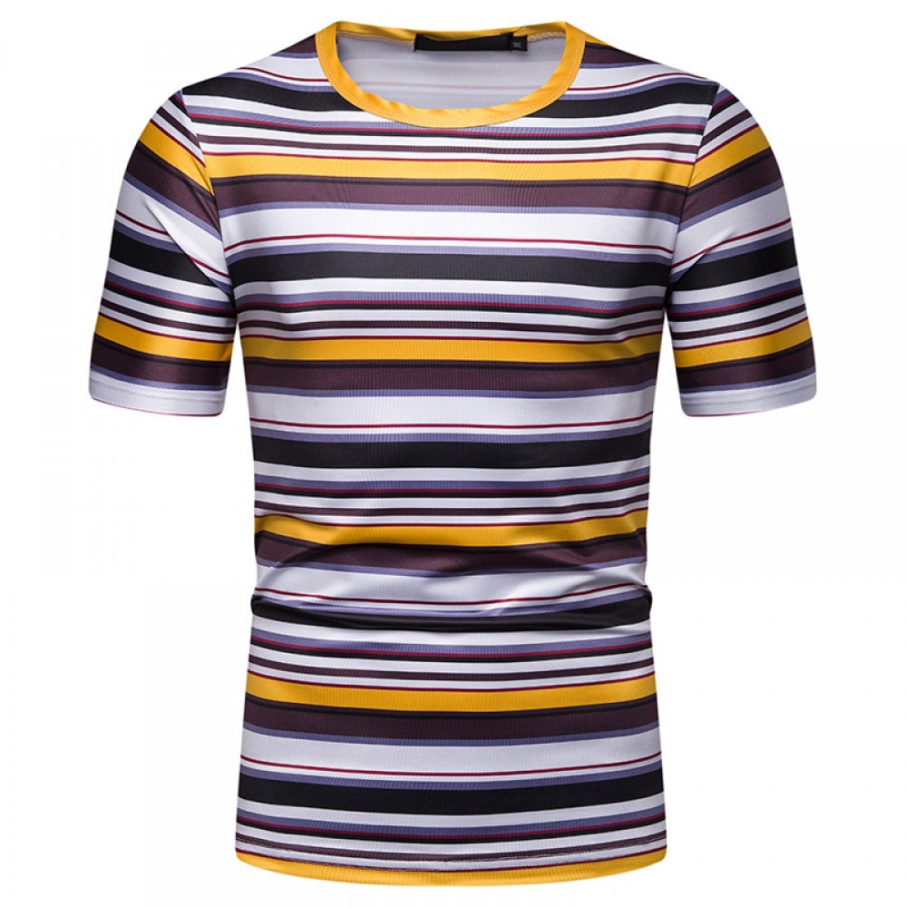 Summer Men's Gold Belt Striped Pattern Casual Round Neck Short-Sleeved T-Shirt