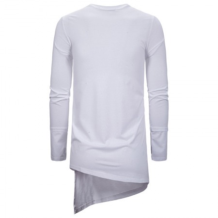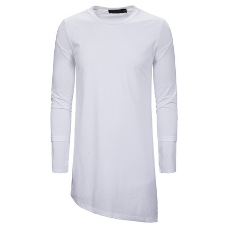 Trendy Brand Round Neck Long T-Shirt Men's Loose Dark Trend Irregular Hem Mens Long-Sleeved T-Shirt