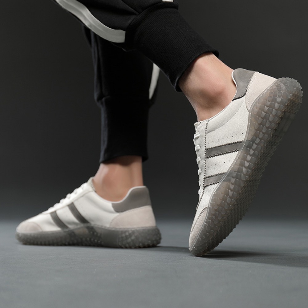 Trendy Shoes Explosive Style Transparent Sole Casual Shoes Breathable Flying Woven Tongue Men's Sports Shoes Leather