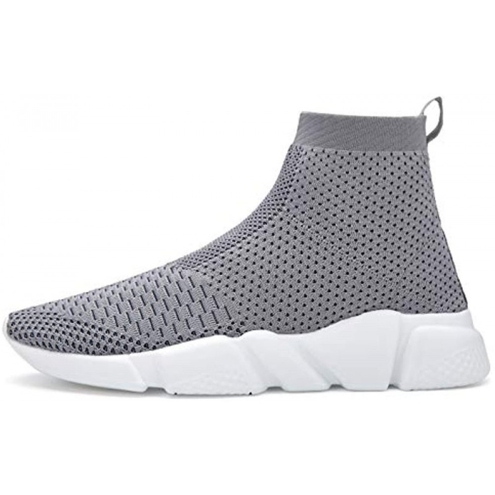 Womens Walking Shoes Slip-On Sneakers Breathable Lightweight Athletic Running Shoes High Top Gray