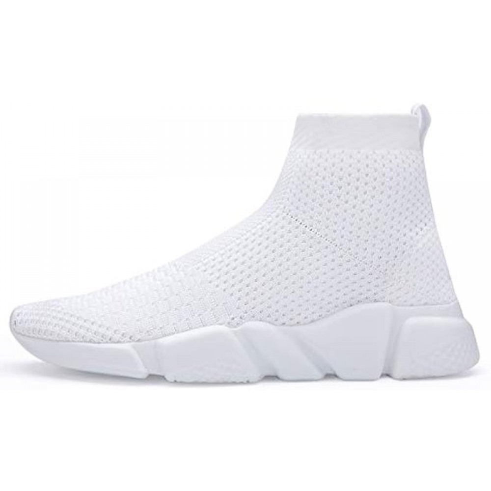 Womens Walking Shoes Slip-On Sneakers Breathable Lightweight Athletic Running Shoes High Top White